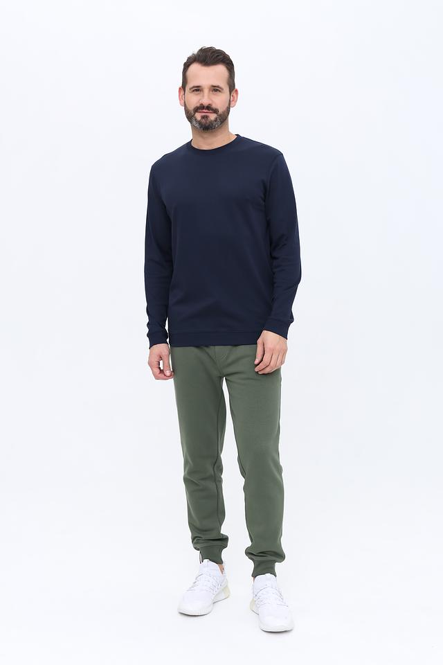 Состав ткани: 65% хлопок, 35% полиэстер. Хлопок обеспечивает мягкость и комфорт, а полиэстер – износостойкость и сохранение формы. Брюки оснащены боковыми карманами и манжетами внизу штанин.