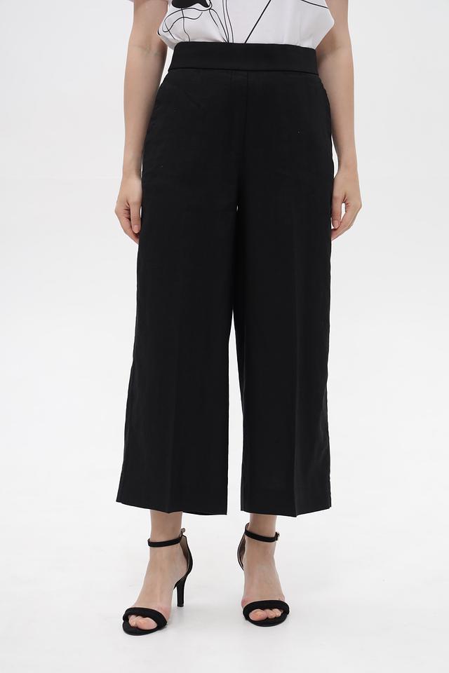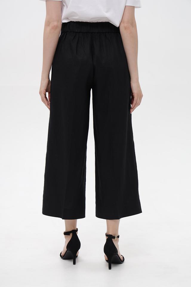 Брюки имеют свободный крой, который обеспечивает комфорт в носке и позволяет коже дышать. Высокая посадка визуально удлиняет ноги и подчеркивает талию. Широкие штанины создают элегантный силуэт и добавляют образу женственности.