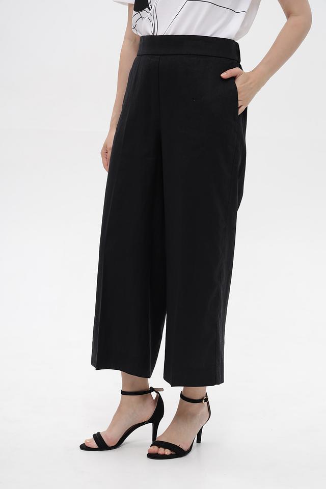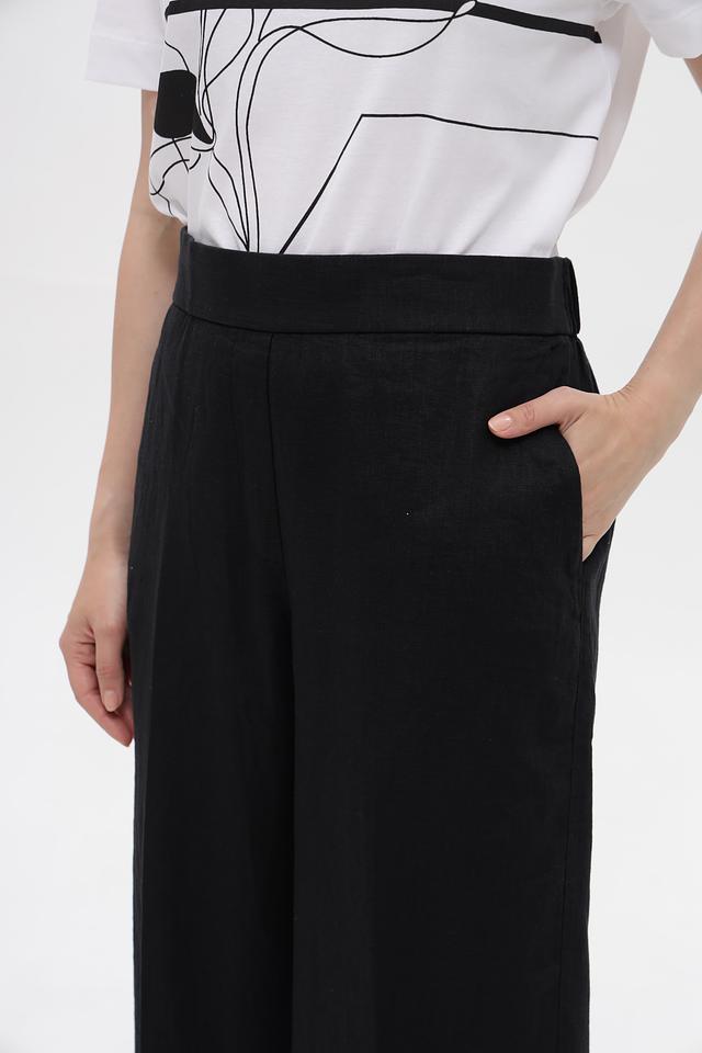 Чёрные брюки палаццо от Taifun – стильное и комфортное решение для создания элегантного образа. Модель выполнена из 100% льна, что обеспечивает легкость и воздухопроницаемость. Состав: лен 100%