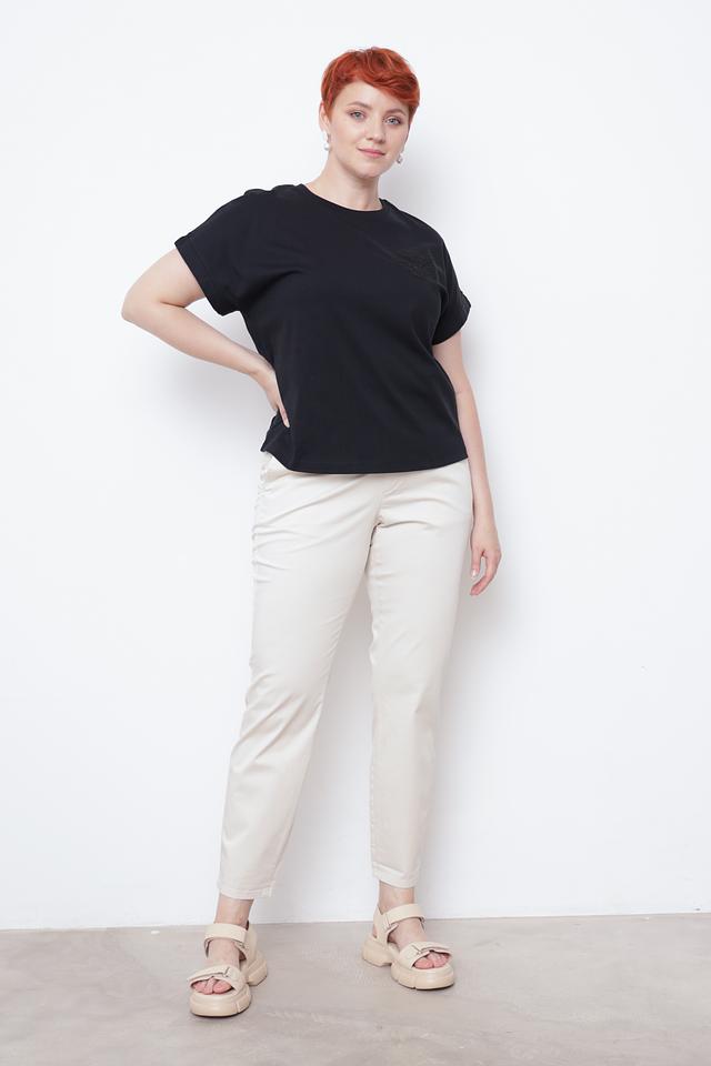 Брюки оснащены стандартным поясом с петлями для ремня, а также функциональными карманами. Застежка на молнию и пуговицу обеспечивает надежную фиксацию. Лаконичный дизайн и нейтральный цвет позволяют легко сочетать эти брюки с различными элементами гардероба.