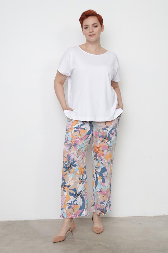 Брюки имеют прямой крой, который обеспечивает свободу движений и подходит для различных типов фигур. Пояс на резинке гарантирует комфортную посадку. Благодаря мягкой и приятной к телу вискозе, брюки идеально подходят для повседневной носки.