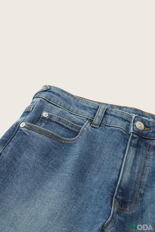 Брюки имеют классический голубой цвет с эффектом потертостей, который придает им стильный и современный вид. Прямой крой и широкие штанины (wide leg) обеспечивают свободу движений, что особенно важно для активных детей.