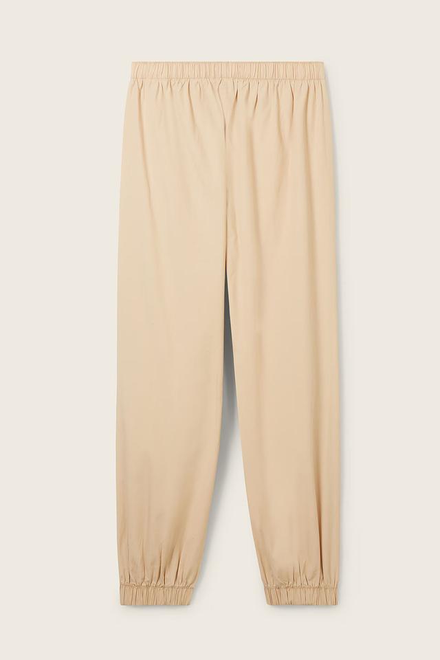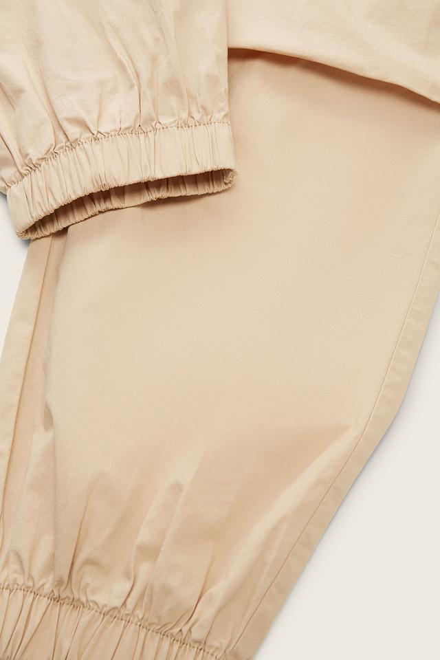 Брюки изготовлены из высококачественного хлопка (98%) с добавлением эластана (2%). Такой состав обеспечивает мягкость, комфорт и свободу движений. Эластичный пояс с утяжкой позволяет регулировать посадку брюк по фигуре, а манжеты на штанинах предотвращают попадание холода.