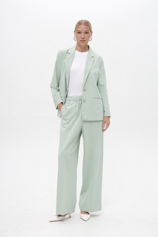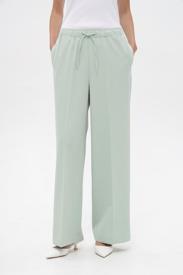 Представляем стильные брюки палаццо от бренда Tom Tailor. Модель выполнена в нежном мятном цвете, который освежит ваш образ и добавит в него легкости.