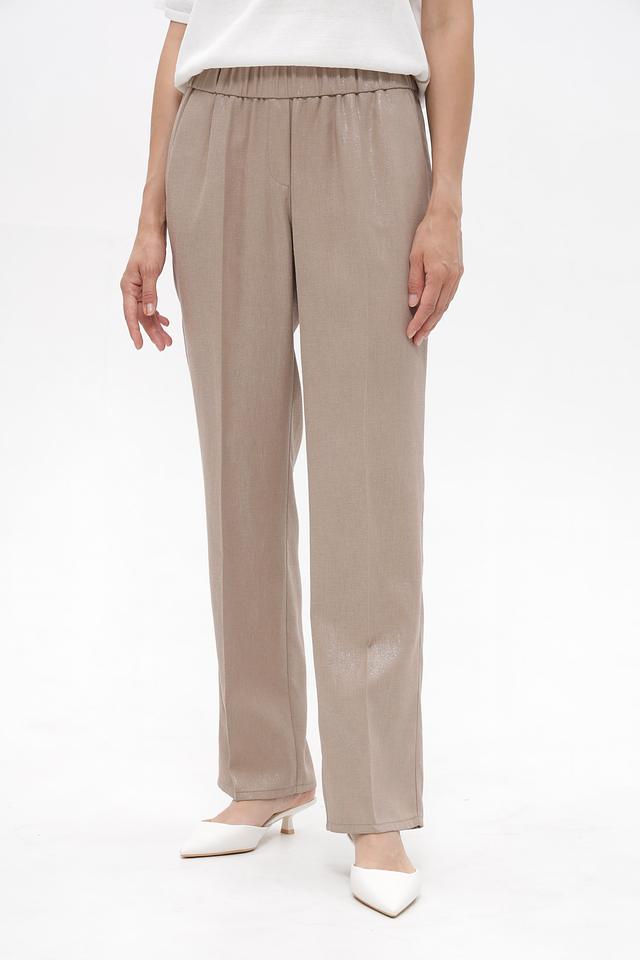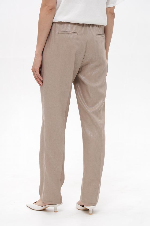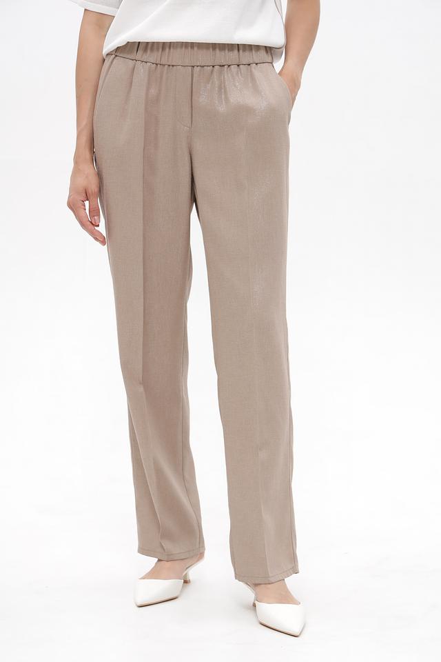 Брюки имеют прямой крой, который обеспечивает свободу движений и комфорт в носке. Эластичный пояс гарантирует идеальную посадку по фигуре. Ткань, сочетающая в себе полиэстер и лен, приятна к телу и хорошо держит форму.