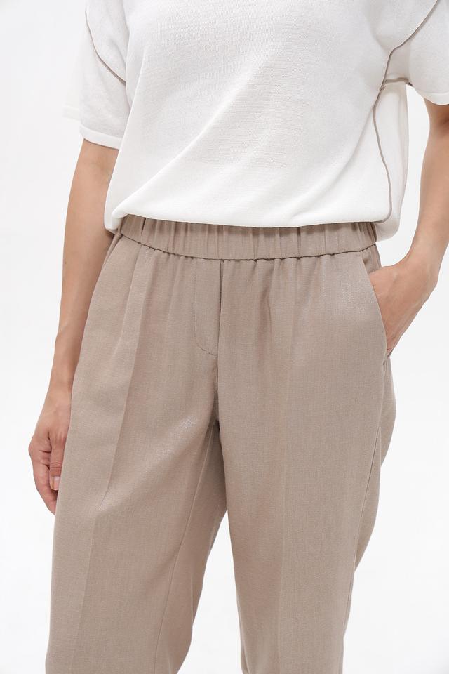 Брюки оснащены боковыми карманами, что делает их практичными и функциональными. Они прекрасно сочетаются с различными видами верха — от простых футболок до элегантных блузок и жакетов. Состав: полиэстер 61%, лен 39%.