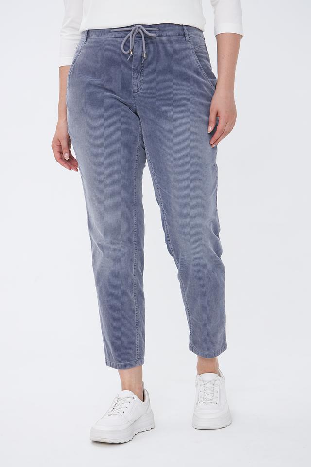 Женские брюки Toni collection серого цвета выполнены из мягкого вельвета с добавлением эластана. Модель имеет удобный пояс на резинке и завязках, а также боковые карманы. Состав: хлопок 98%, эластан 2%