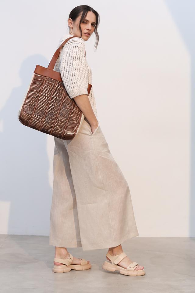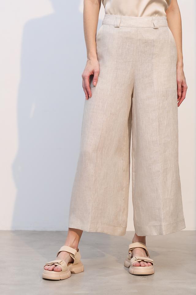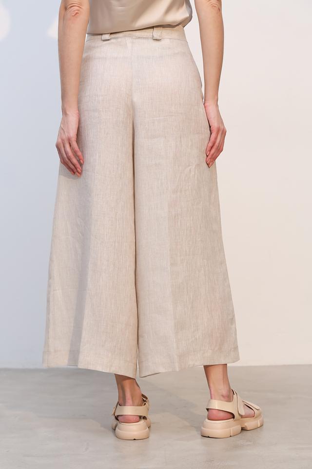 Брюки изготовлены из 100% льна, что делает их идеальным выбором для теплой погоды. Лен – это натуральный, дышащий материал, который обеспечивает приятные ощущения на коже и позволяет ей свободно дышать. Прямой крой брюк создает элегантный силуэт, а высокая посадка подчеркивает талию и визуально удлиняет ноги.