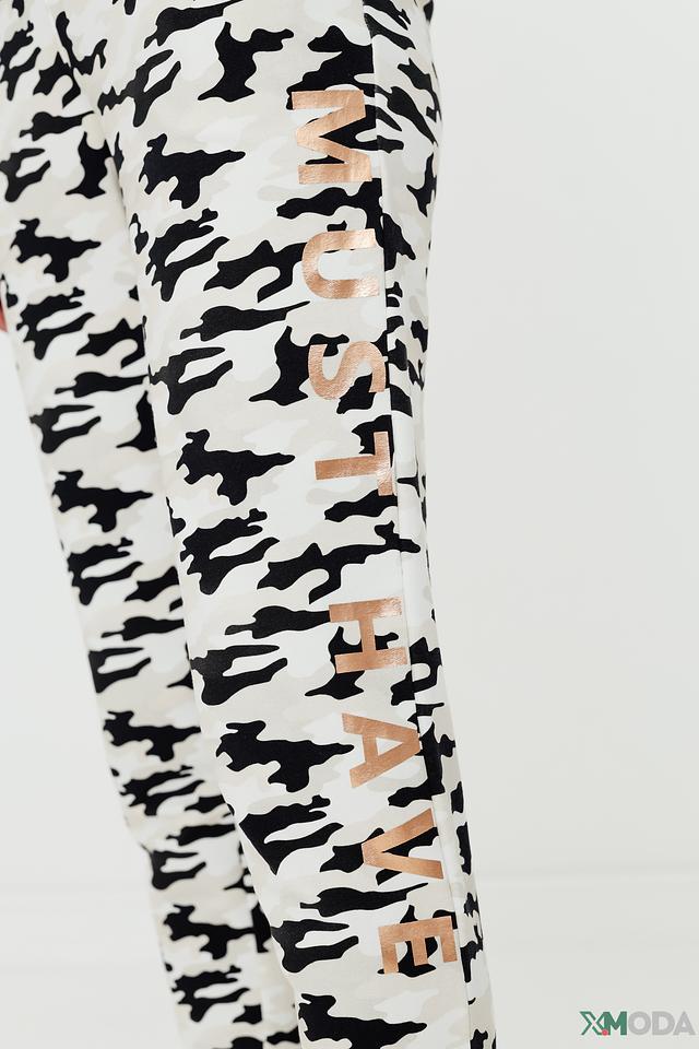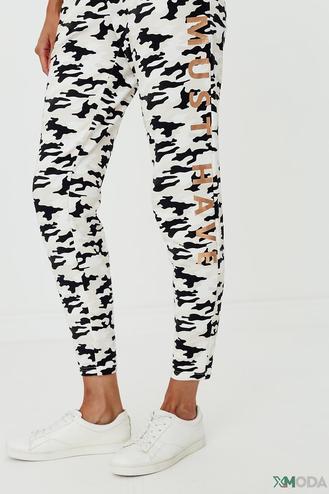 На левой штанине расположена надпись "MUST HAVE", выполненная в контрастном цвете. Эти брюки идеально подойдут для создания модных и комфортных образов на каждый день. Состав: хлопок 95%, эластан 5%.