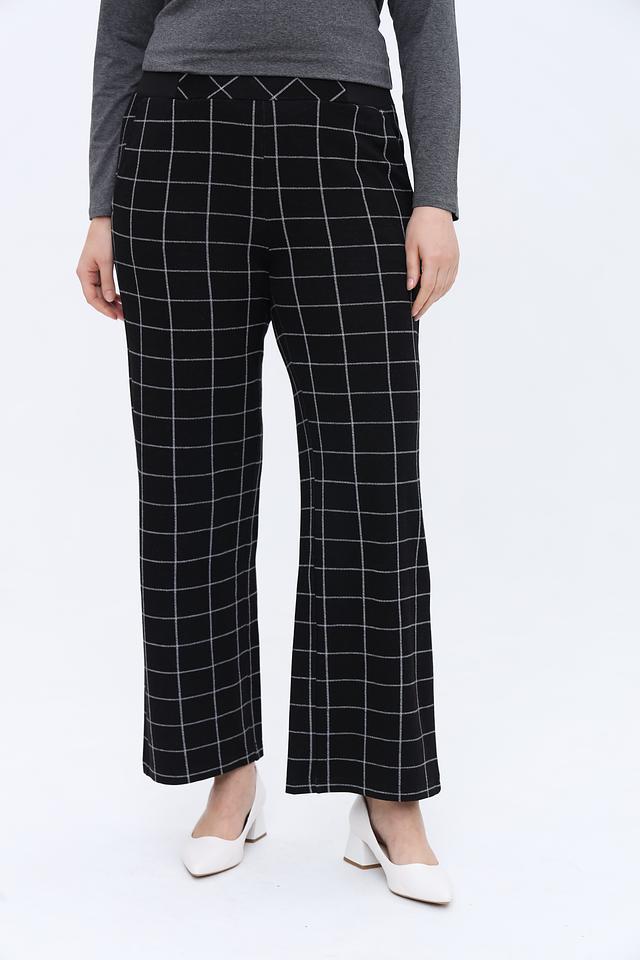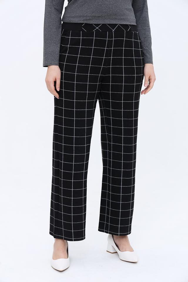 Женские брюки Via Appia чёрного цвета с классическим клетчатым принтом. Модель выполнена из мягкой и приятной к телу ткани с добавлением эластана для комфортной посадки и свободы движений. Состав: вискоза 50%, полиэстер 45%, эластан 5%