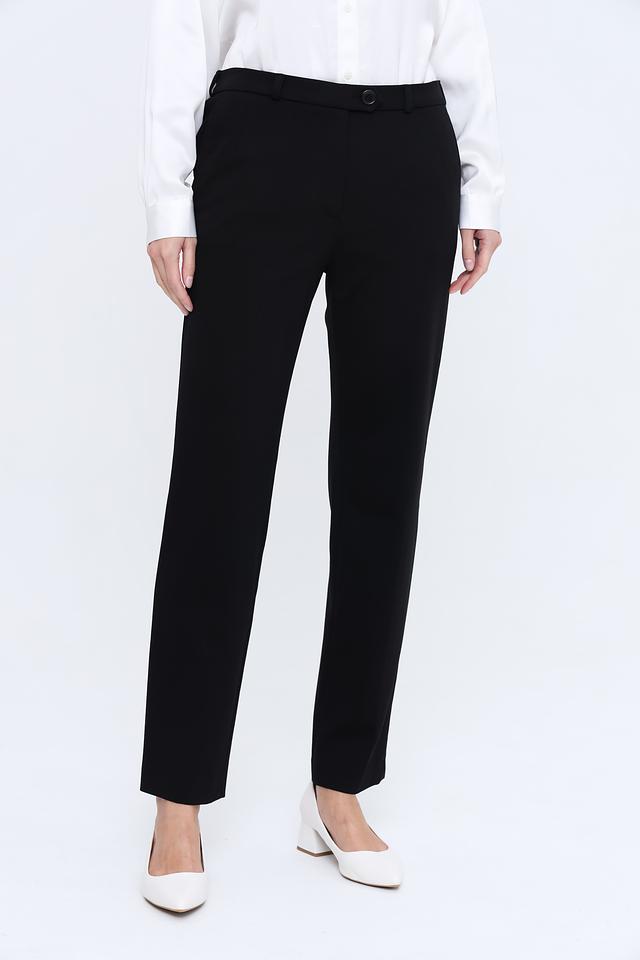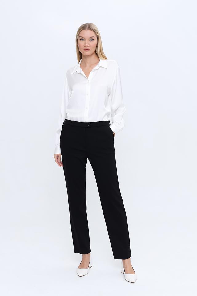 Состав ткани: 65% вискоза, 30% полиамид, 5% эластан. Данные брюки идеально подойдут для создания деловых комплектов, а также для повседневной носки. Универсальный чёрный цвет легко сочетается с различными видами блузок, рубашек и жакетов.