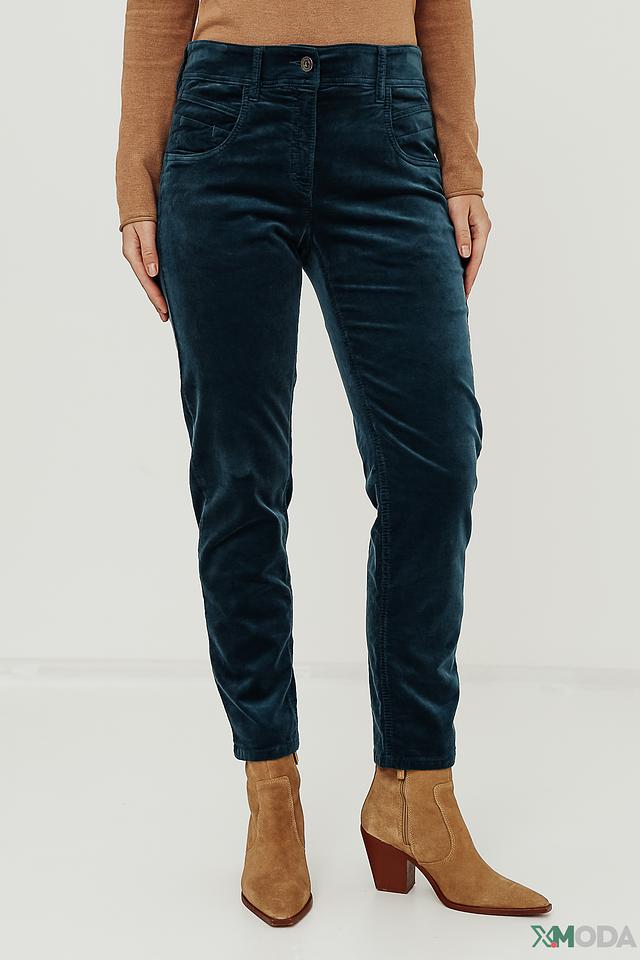 Женские брюки от Zerres темно-синего цвета выполнены из мягкого вельвета с добавлением хлопка и лиоцелла. Модель отличается высокой посадкой и прямым кроем, обеспечивающим комфорт и свободу движений. Состав: хлопок 73%, лиоцел 25%, эластан 2%
