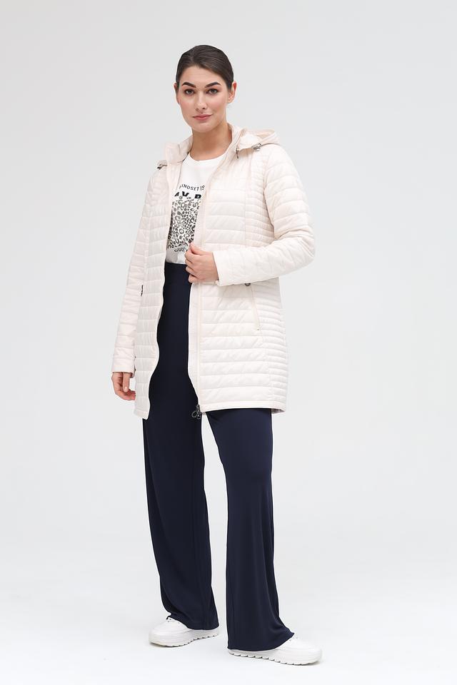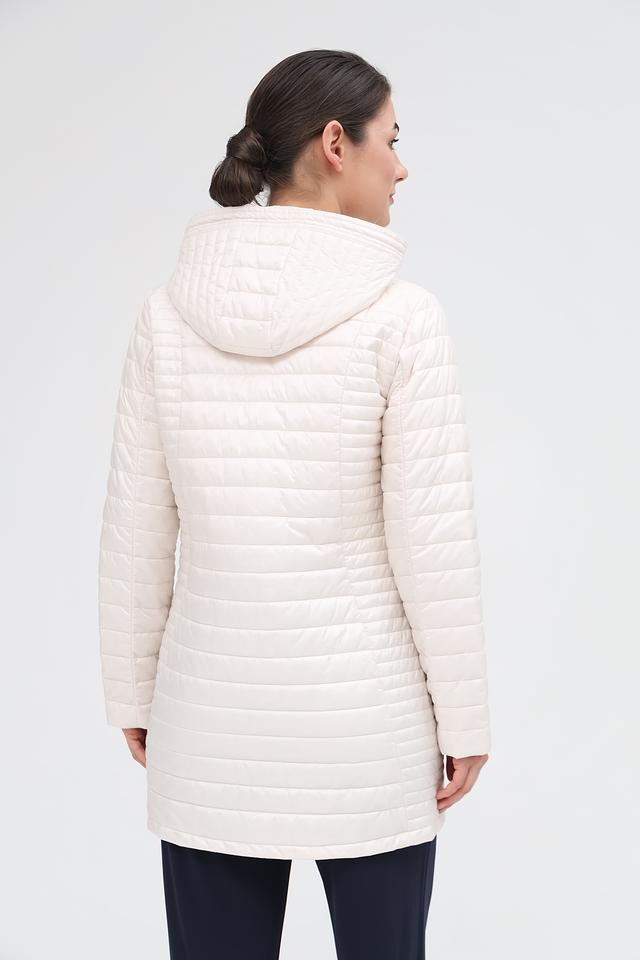 Куртка имеет стеганую фактуру, которая придает ей элегантный вид. Капюшон обеспечивает дополнительную защиту от непогоды, а застежка-молния позволяет легко регулировать степень теплоизоляции.