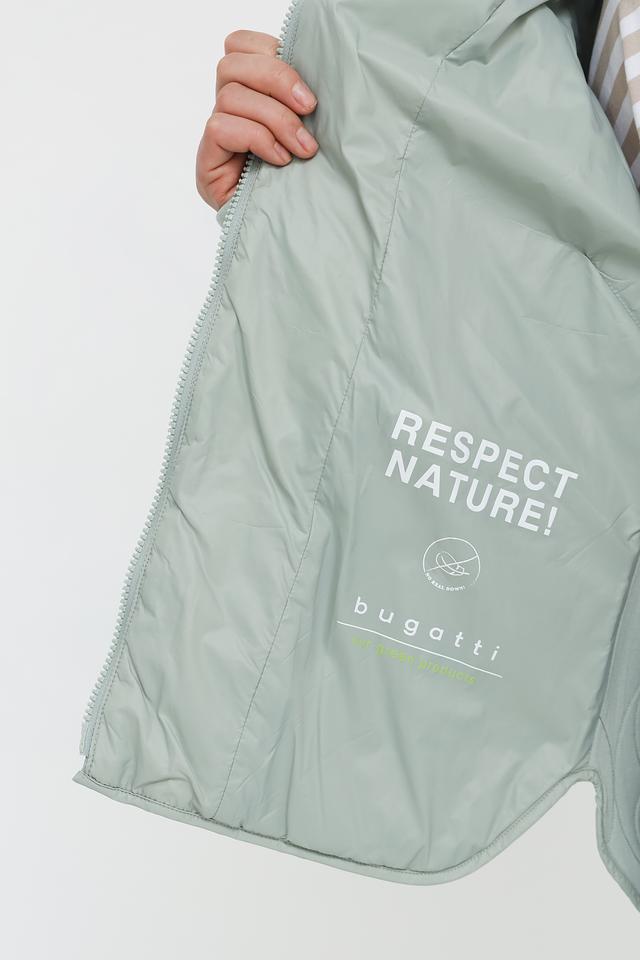 Удобный крой не сковывает движений, а эластичные манжеты и нижний край обеспечивают плотное прилегание. Куртка идеально подходит для повседневной носки и активного отдыха. На подкладке куртки присутствует надпись "RESPECT NATURE!" и логотип бренда Bugatti.