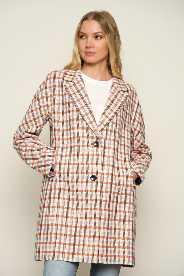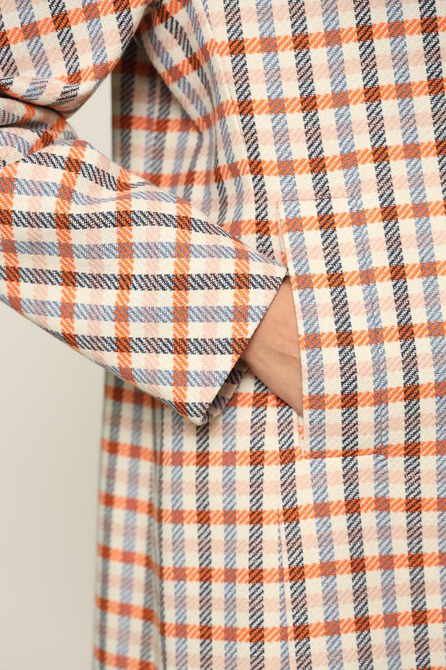 Это стильное пальто от Bugatti станет отличным дополнением к вашему гардеробу. Пальто выполнено в клетчатом дизайне, сочетающем оранжевые, голубые, белые и черные оттенки.