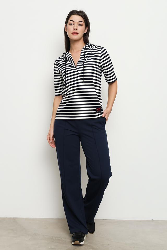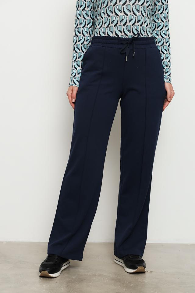 Брюки имеют прямой крой, который визуально удлиняет силуэт и обеспечивает свободу движений. Эластичный пояс с кулиской гарантирует комфортную посадку по фигуре. Декоративные вытачки спереди добавляют изысканности и подчеркивают безупречный стиль.