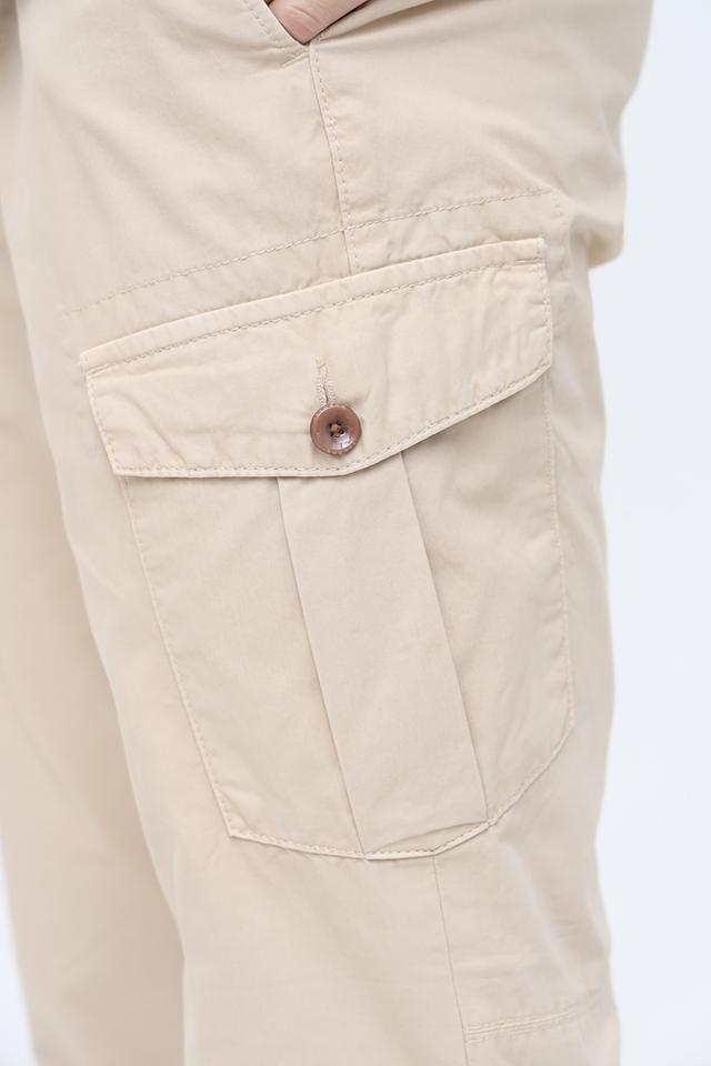 Особенностью данной модели являются функциональные накладные карманы на бедрах, которые добавляют брюкам практичности и стиля. Застежка на пуговицу и молнию обеспечивает надежную фиксацию. Эластичная резинка на поясе и манжетах брюк обеспечивает комфортную посадку по фигуре.