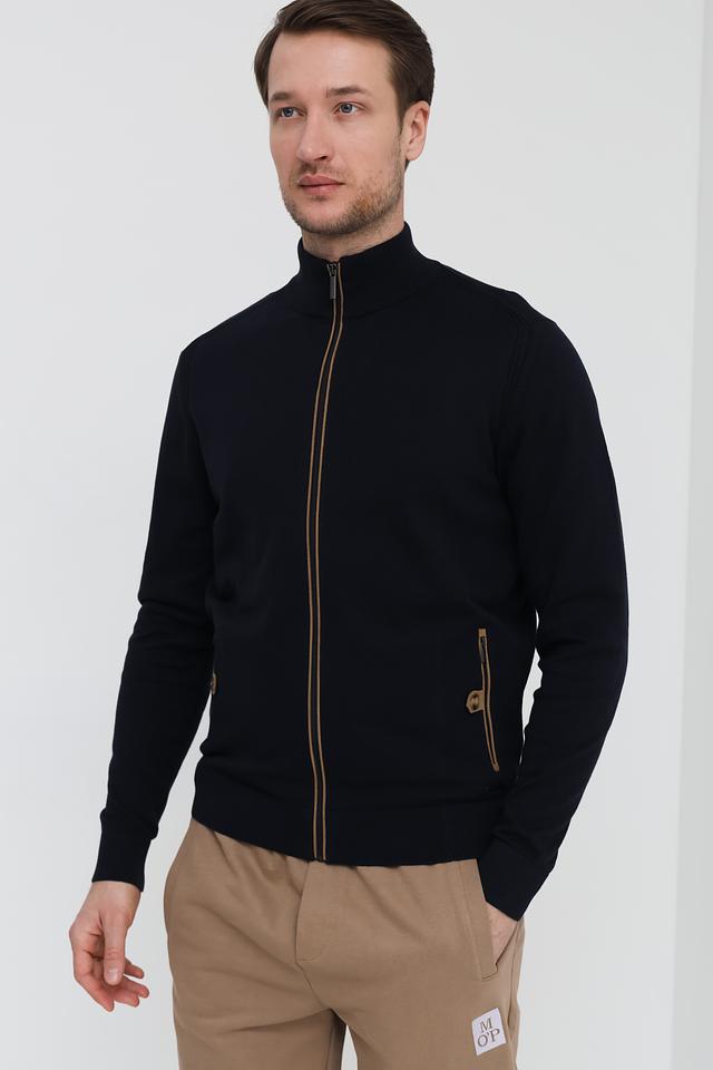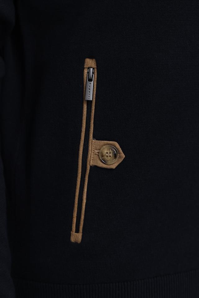 Мужской кардиган Bugatti чёрного цвета с застёжкой на молнии и оригинальным декором. Изготовлен из 100% хлопка, обеспечивающего комфорт и удобство в носке. Стильное решение для создания повседневного образа. Состав: хлопок 100%