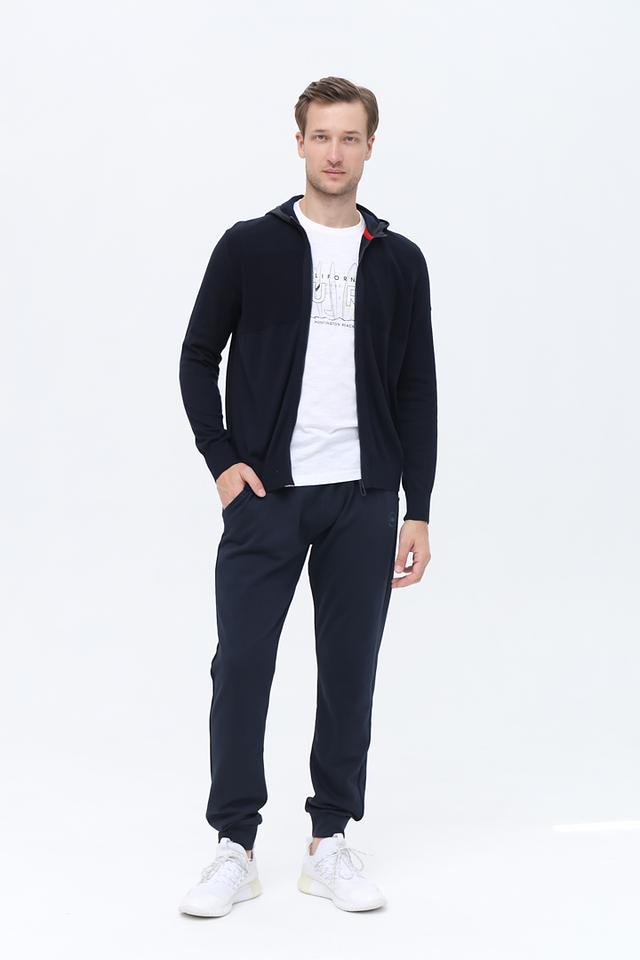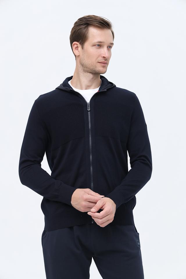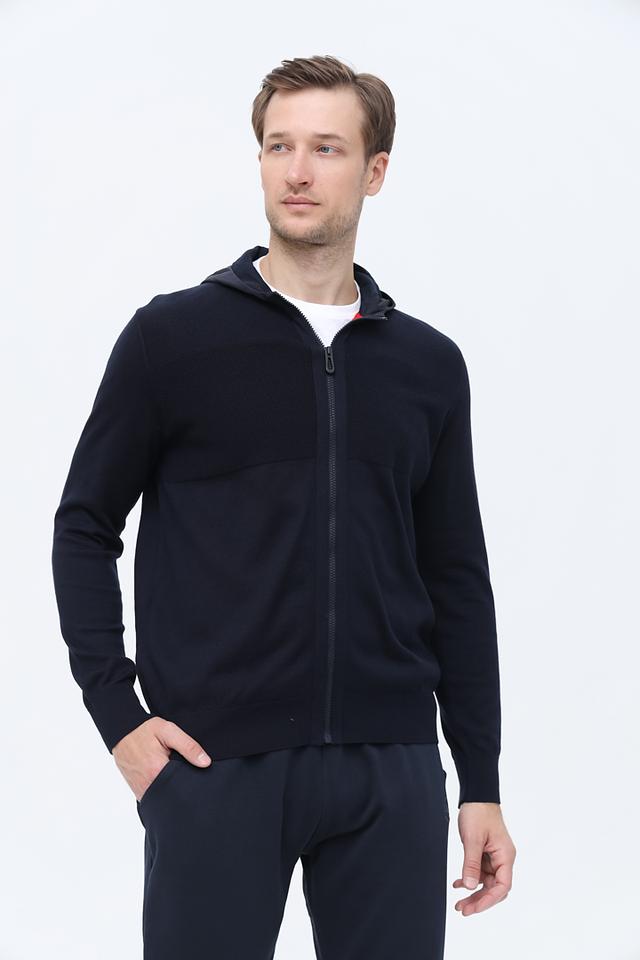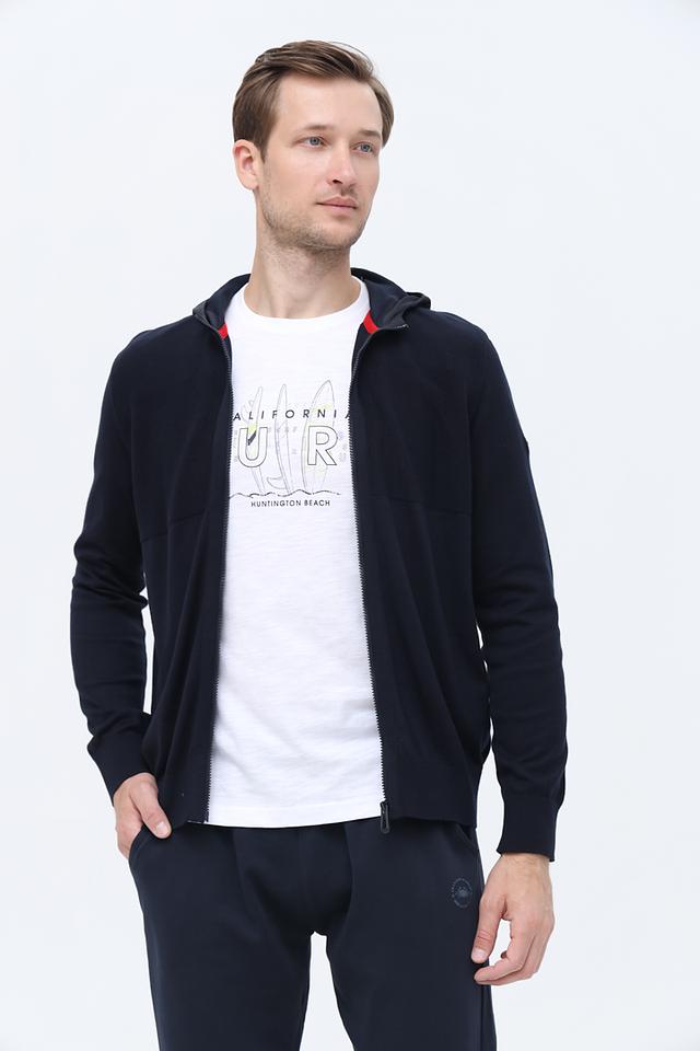 Мужской кардиган Bugatti темно-синего цвета на молнии с капюшоном. Изготовлен из мягкого трикотажа, обеспечивающего комфорт и удобство. Отличный выбор для создания стильного и расслабленного образа. Состав: хлопок 90%, полиамид 10%