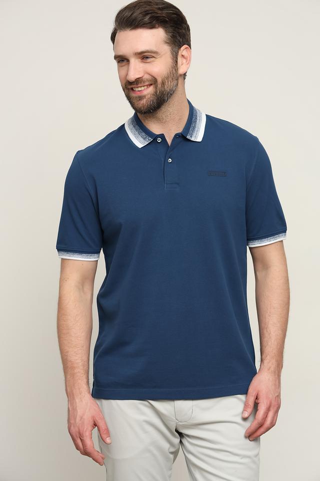 Мужское поло Bugatti синего цвета с контрастной полоской на воротнике и манжетах. Классический крой и 100% хлопковый состав обеспечивают комфорт и удобство в носке. Состав: хлопок 100%