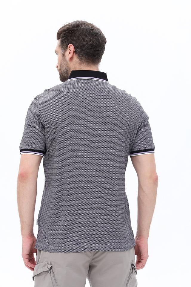 Отличительной особенностью данной модели является сочетание серого цвета с белым и черным принтом, а также контрастная черная отделка воротника и манжет. Это поло идеально подойдет для повседневной носки, а также для создания более формальных образов.