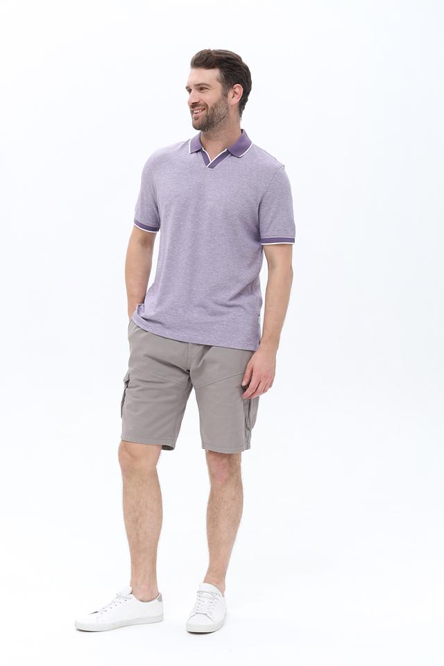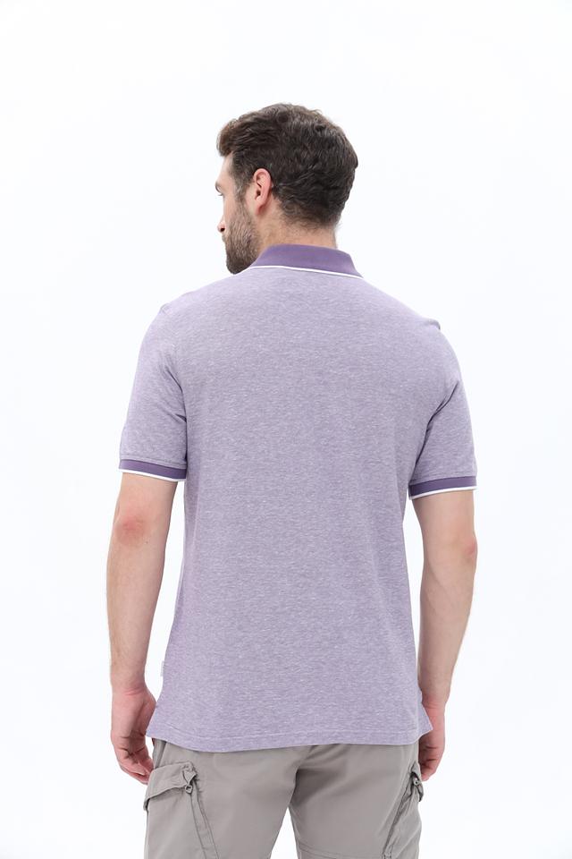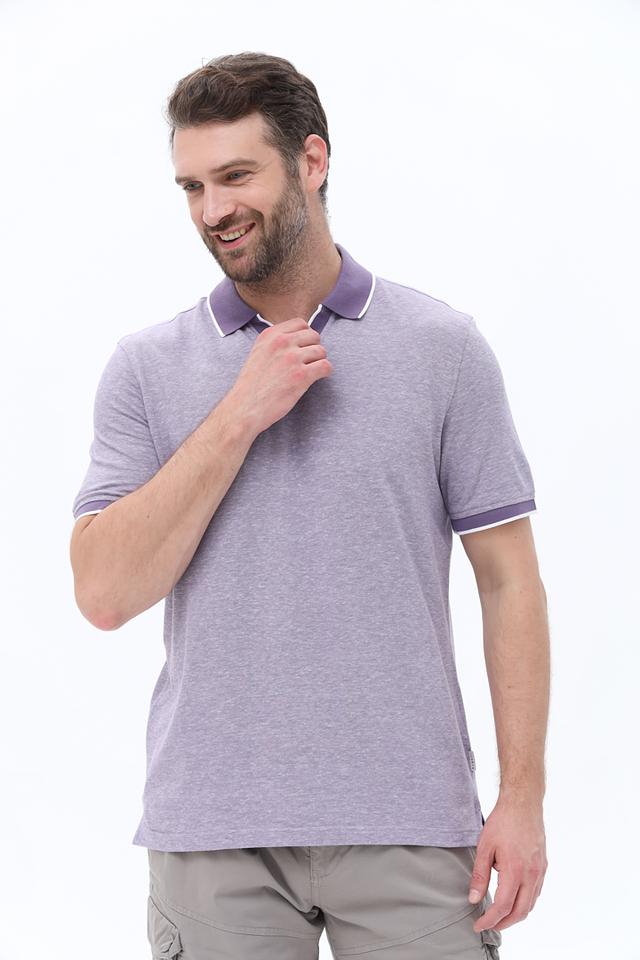 Мужское поло Bugatti лавандового цвета с белой отделкой на воротнике и рукавах. Изготовлено из хлопка с добавлением льна для комфорта и воздухопроницаемости. Стильное и удобное поло для повседневной носки. Состав: хлопок 85%, лен 15%