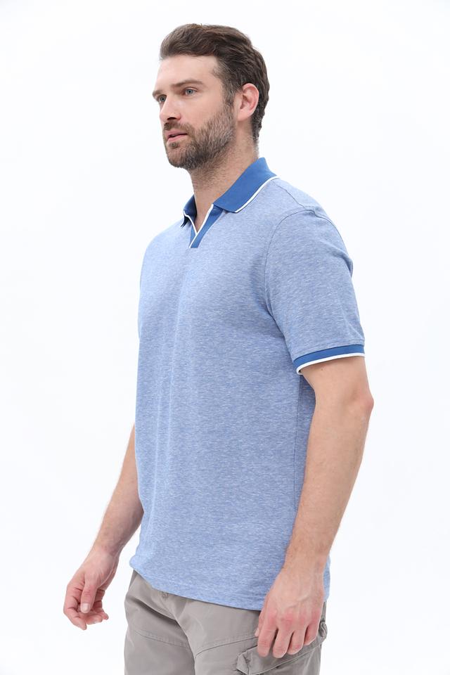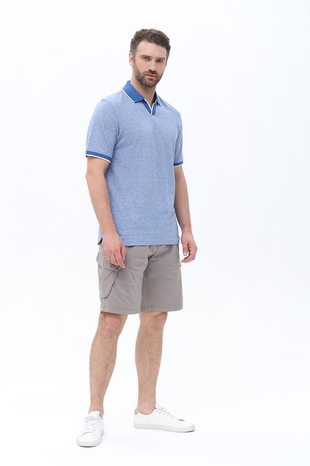 Особенностью данной модели является контрастная отделка воротника и рукавов – белый кант и синяя полоса придают поло более выразительный и стильный вид. Поло выполнено из высококачественного хлопка (85%) с добавлением льна (15%), что обеспечивает комфорт, воздухопроницаемость и приятные тактильные ощущения.