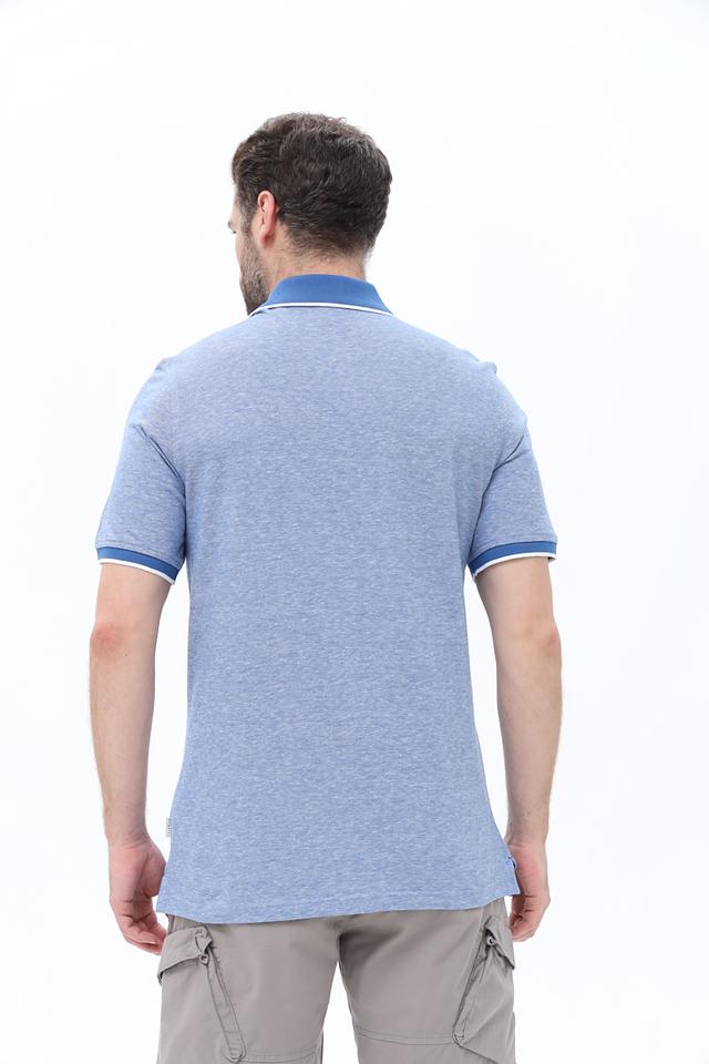 Мужское поло Bugatti голубого цвета с контрастной отделкой воротника и рукавов. Изготовлено из хлопка с добавлением льна, обеспечивающего комфорт и воздухопроницаемость. Стильный и удобный выбор для повседневной носки. Состав: хлопок 85%, лен 15%