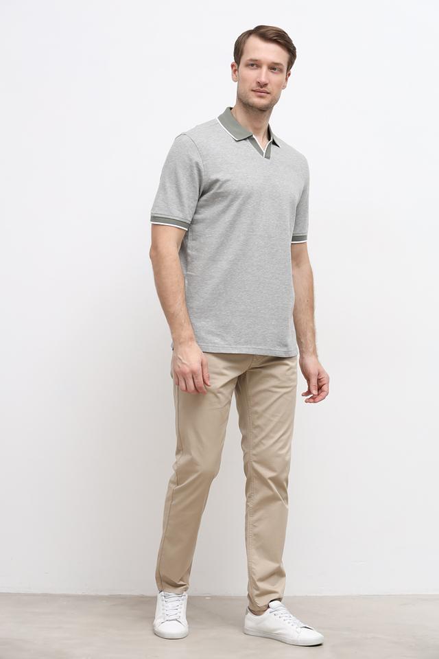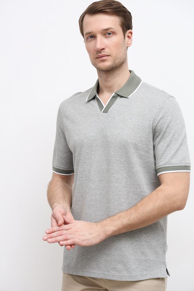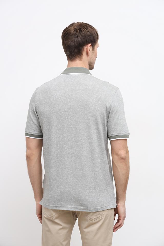 Стильное поло Bugatti серого цвета с зелёной отделкой на воротнике и рукавах. Изготовлено из высококачественного хлопка с добавлением льна для комфорта и воздухопроницаемости. Состав: хлопок 85%, лен 15%