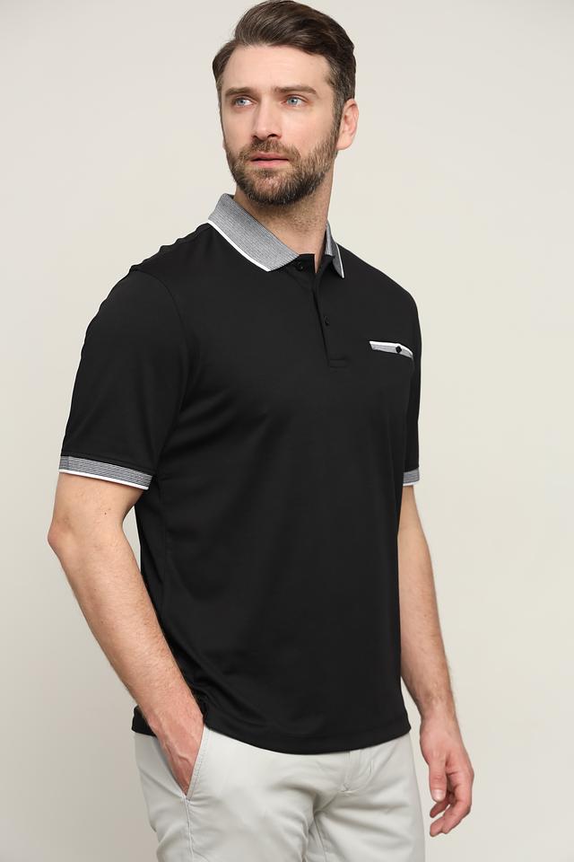 Чёрное поло от Bugatti с контрастной отделкой на воротнике и рукавах. Классический крой и сочетание хлопка с полиэстером обеспечивают комфорт и практичность. Состав: полиэстер 50%, хлопок 50%