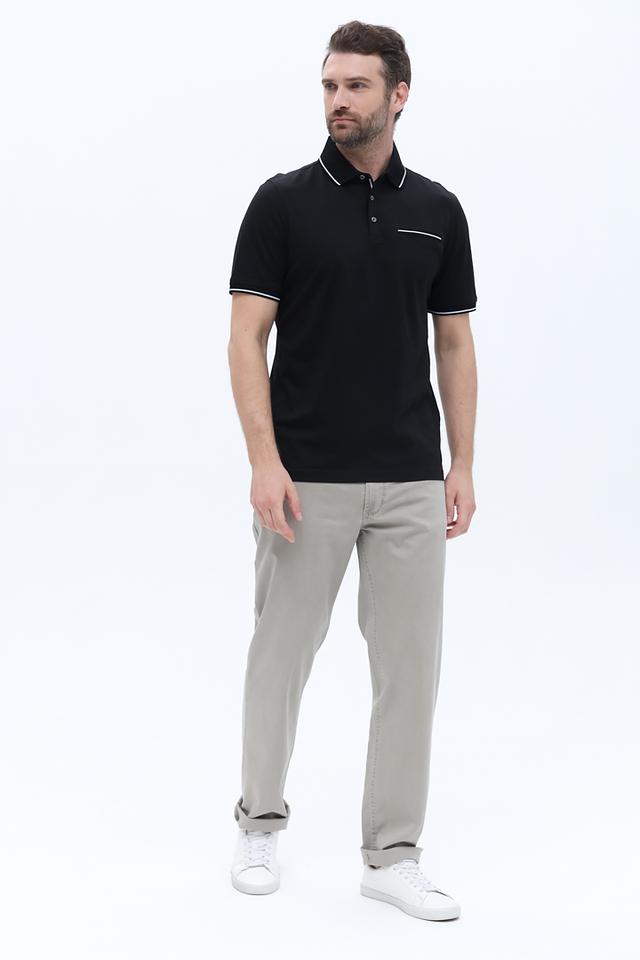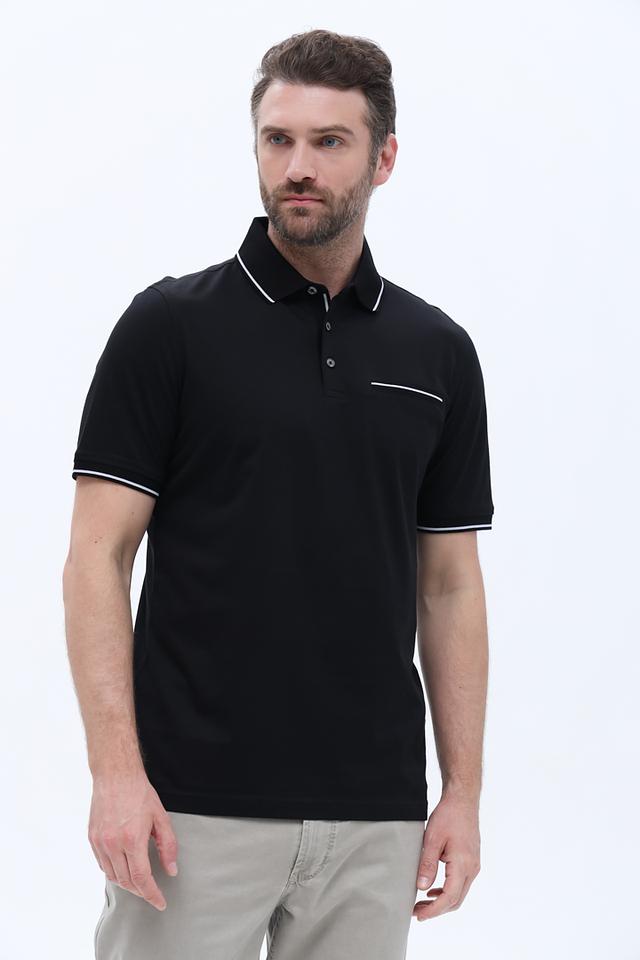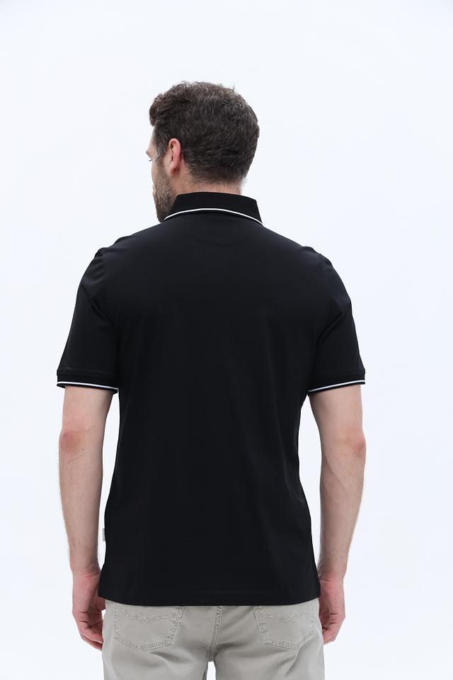 Мужское поло от Bugatti выполнено в классическом чёрном цвете с аккуратной белой отделкой по краю воротника и рукавов. Эта модель станет отличным дополнением к вашему гардеробу, сочетая в себе элегантность и удобство.