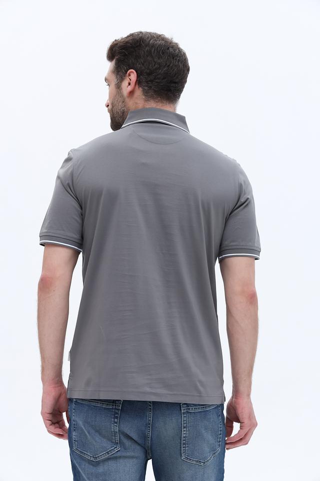 Мужское поло от Bugatti выполнено в сером цвете с аккуратной белой отделкой по краю воротника и рукавов. Эта модель станет отличным дополнением к вашему гардеробу, сочетая в себе комфорт и стиль.