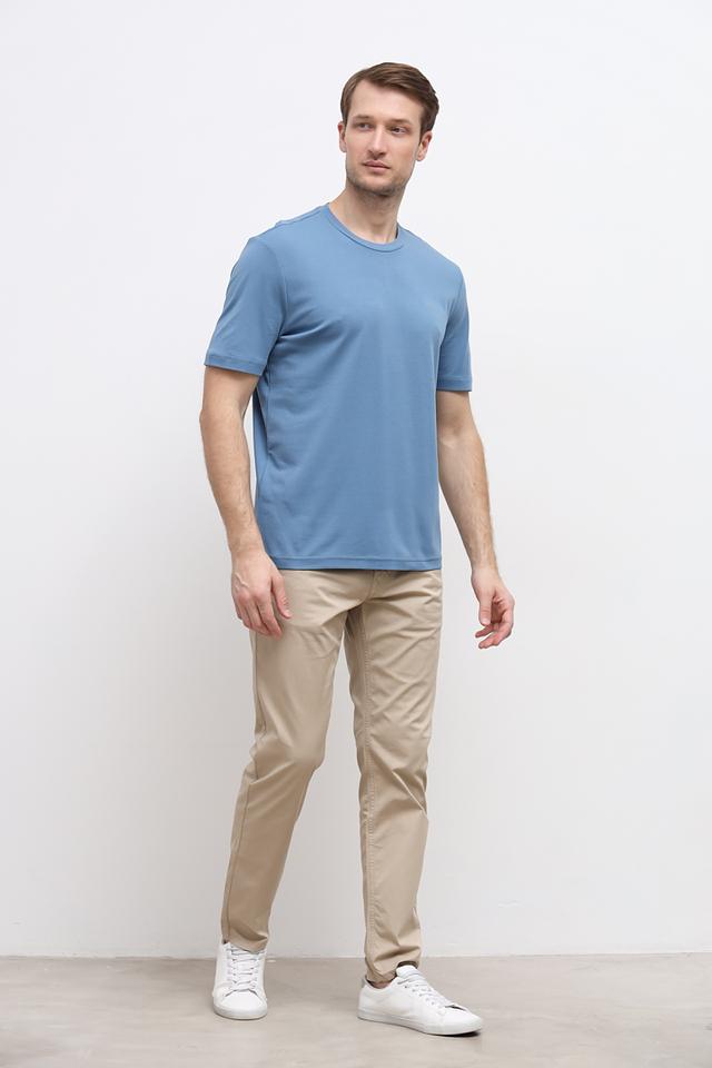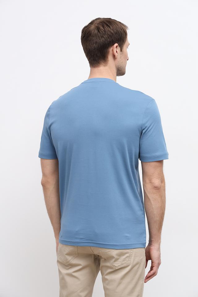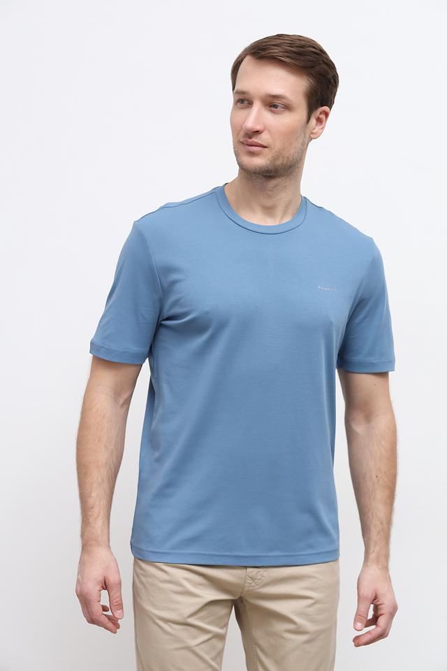 Цвет футболки – приглушенный голубой, который легко сочетается с различными элементами гардероба. Минималистичный дизайн без ярких принтов и логотипов делает эту футболку универсальной и подходящей для любого случая.