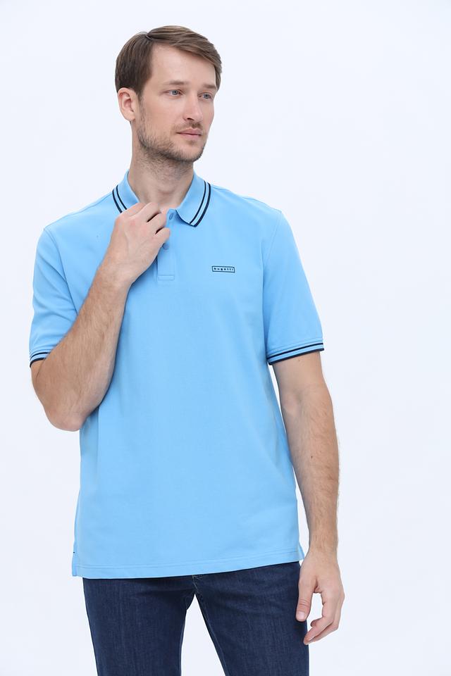 Поло Bugatti голубое с кантом