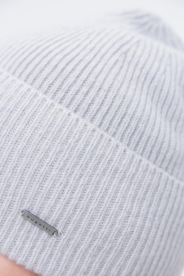 Шапка имеет классический дизайн, выполненный в сером цвете. Текстура вязания добавляет изделию объём и уют. Небольшой металлизированный логотип Bugatti деликатно размещен спереди, подчеркивая принадлежность к бренду.