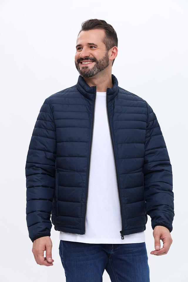 Мужская куртка Bugatti синего цвета – это стильная и практичная модель для прохладной погоды. Куртка выполнена в стеганом дизайне, имеет удобный воротник-стойку и застегивается на молнию. Состав: полиэстер 100%