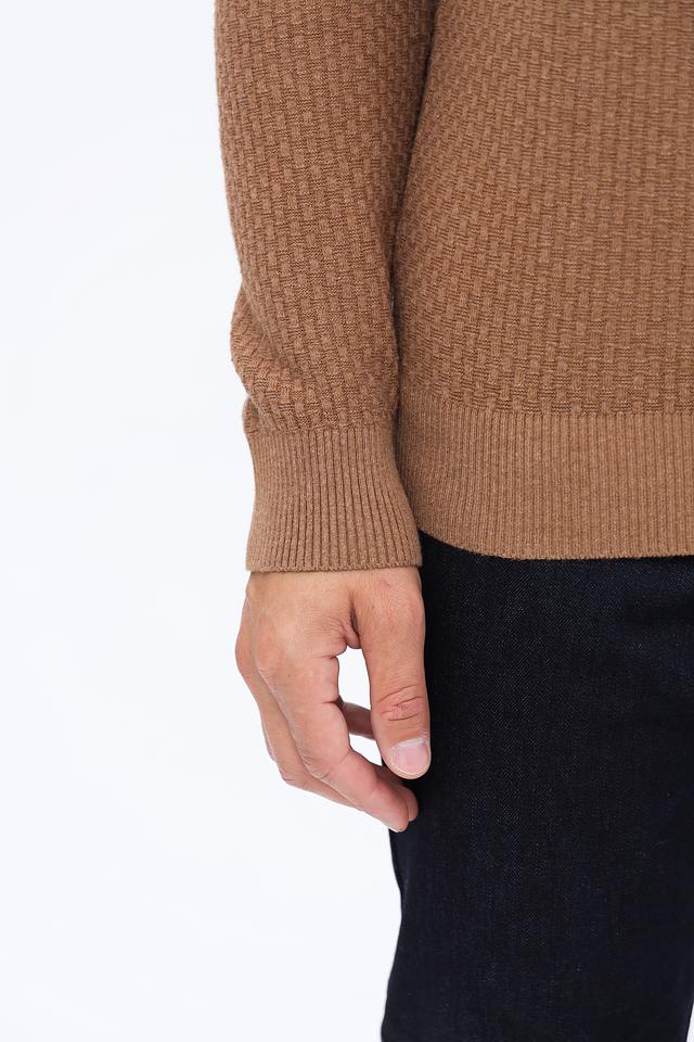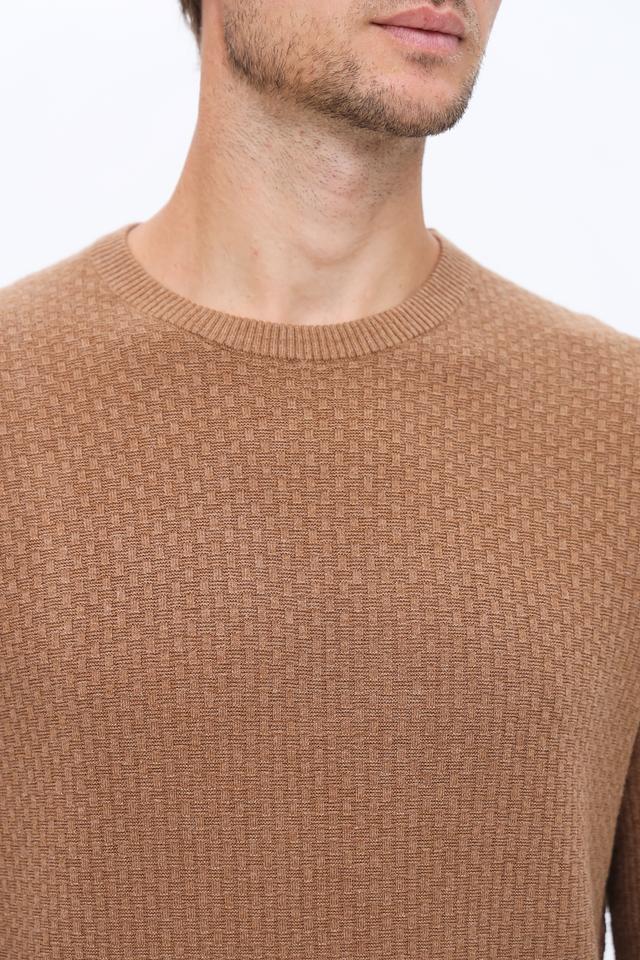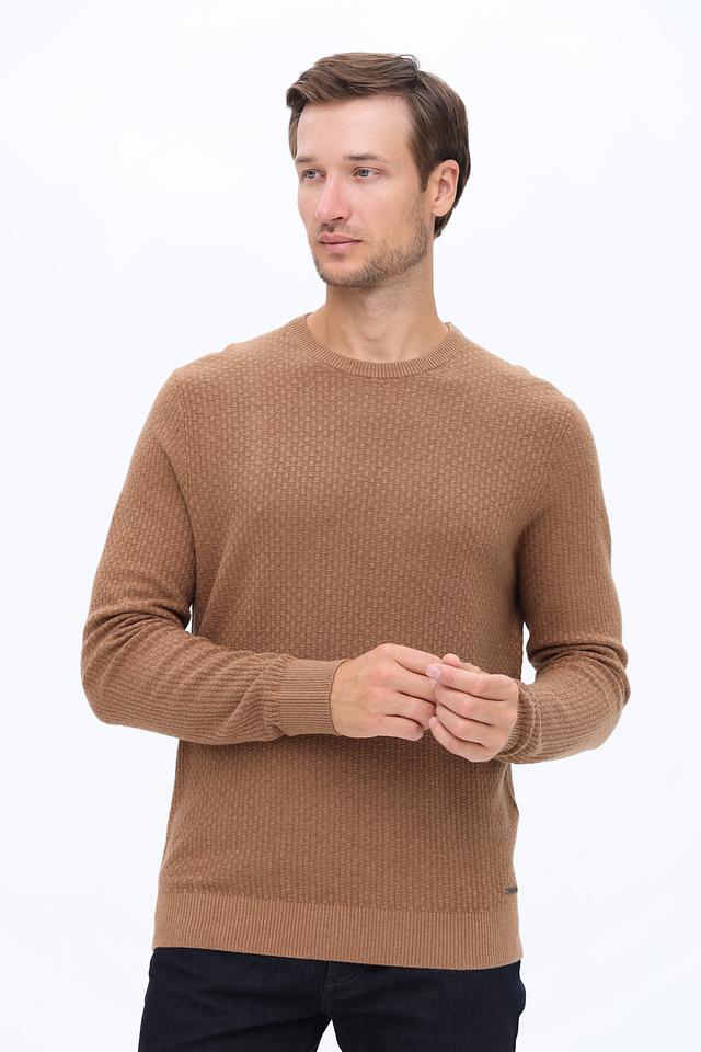 Мужской джемпер Bugatti коричневого цвета с текстурным узором. Изготовлен из высококачественного хлопка с добавлением кашемира для мягкости и комфорта. Идеальный выбор для создания стильного и уютного образа. Состав: хлопок 95%, кашемир 5%