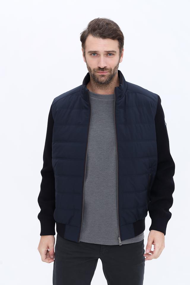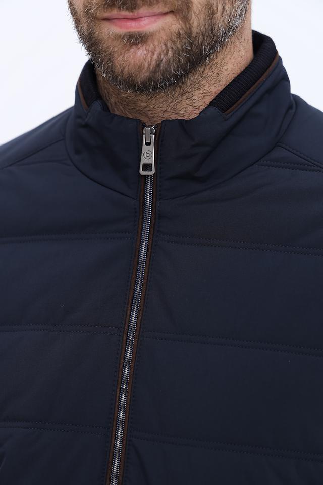 Эта мужская куртка от Bugatti сочетает в себе современный дизайн и функциональность. Основной цвет куртки – насыщенный синий, который отлично сочетается с черными вставками на рукавах и воротнике.