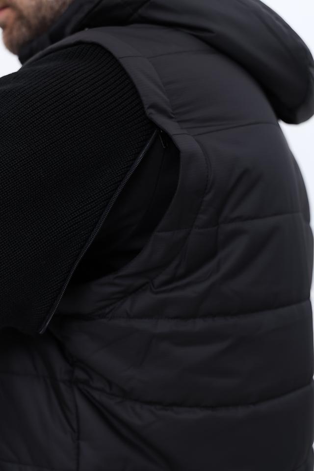 Стеганая текстура придает жилету современный вид, а капюшон добавляет функциональности и защиты от ветра. Застежка-молния позволяет легко регулировать степень утепления. Удобный крой обеспечивает свободу движений, а лаконичный дизайн делает этот жилет универсальным дополнением к любому гардеробу.