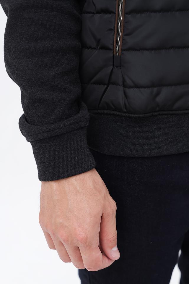 Кардиган имеет стеганую лицевую часть, что придает ему современный и динамичный вид. Рукава выполнены из трикотажа, обеспечивая комфорт и свободу движений. Застежка-молния позволяет регулировать степень теплоты и создавать разные образы.