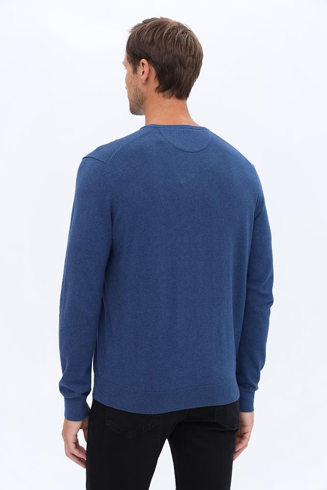 Этот мужской джемпер от Bugatti выполнен из приятной на ощупь смеси хлопка и кашемира. Классический синий цвет делает его универсальным дополнением к любому образу.