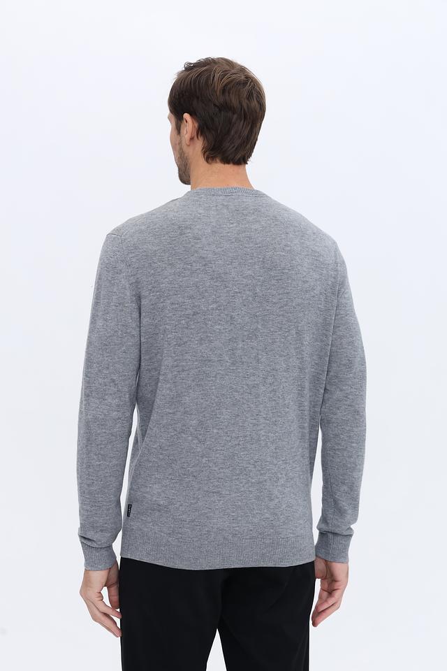 Мужской джемпер от Bugatti выполнен в сером меланжевом цвете, что делает его универсальным дополнением к любому образу. Модель имеет классический крой с круглым вырезом горловины и длинными рукавами.