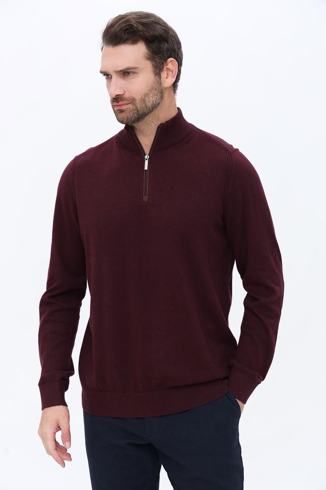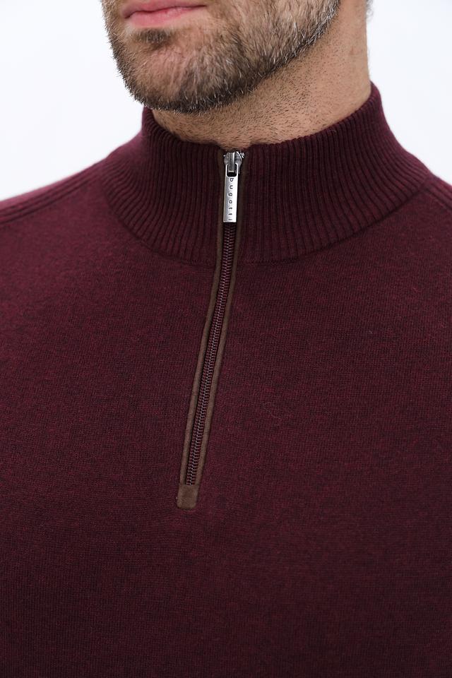 Мужской джемпер Bugatti бордового цвета с короткой молнией на воротнике. Изготовлен из мягкого и приятного к телу сочетания хлопка и кашемира, обеспечивающего комфорт и тепло. Состав: хлопок 95%, кашемир 5%
