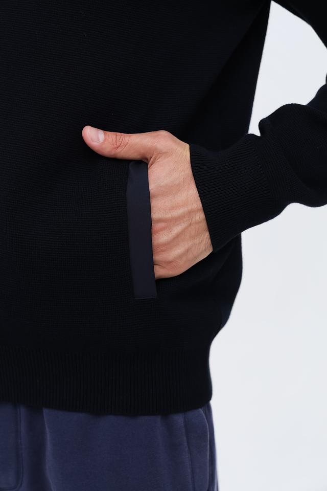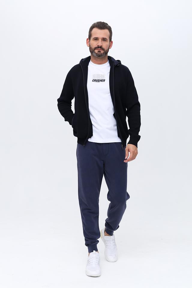 Данная модель имеет классический крой, молнию по всей длине и удобный капюшон. Чёрный цвет делает кардиган универсальным элементом гардероба, который легко сочетается с различными стилями одежды.