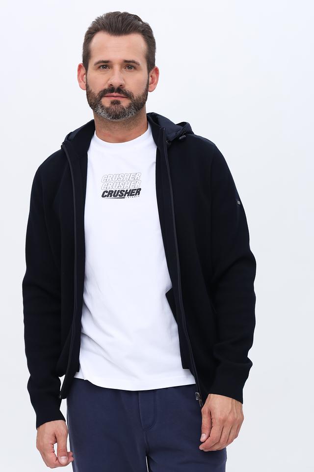 Чёрный кардиган Bugatti на молнии с капюшоном – стильное и комфортное решение для повседневного гардероба. Модель выполнена из мягкого хлопка, обеспечивающего удобство в носке. Отличается лаконичным дизайном и практичностью. Состав: хлопок 100%