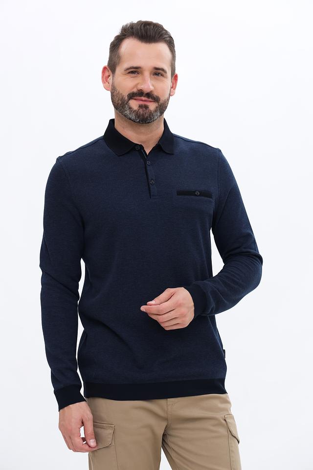 Мужское поло от Bugatti выполнено в темно-синем цвете и отличается стильным дизайном с длинным рукавом. Эта модель станет отличным дополнением к вашему повседневному гардеробу, сочетая в себе комфорт и элегантность.