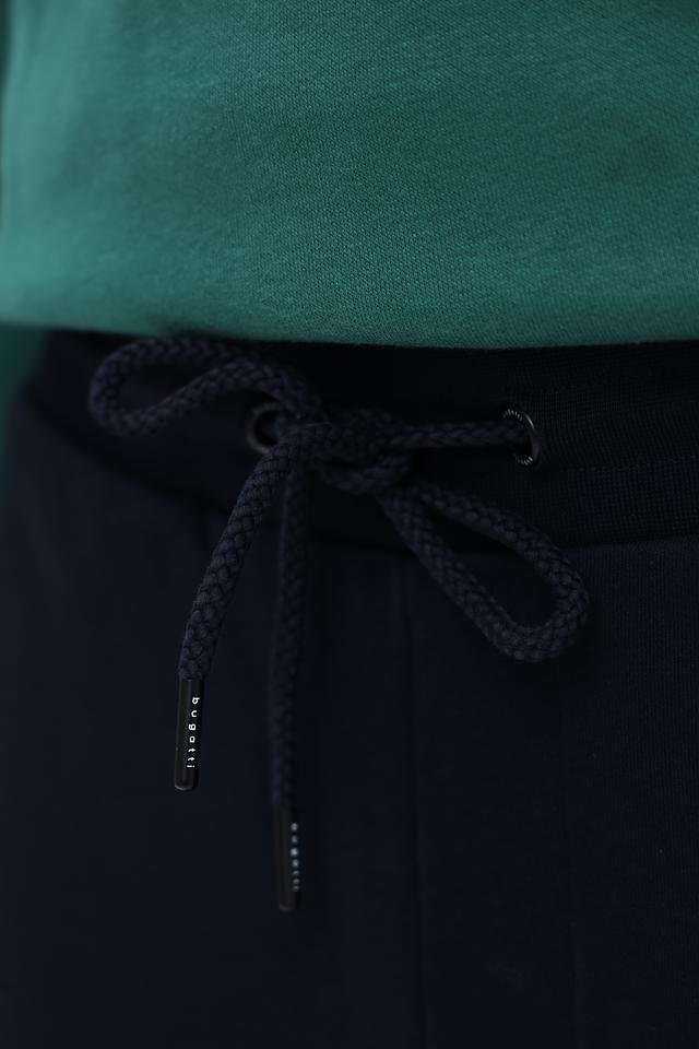 Брюки оснащены манжетами внизу штанин, обеспечивающими плотное прилегание и предотвращающими попадание холода. Логотип бренда Bugatti деликатно размещен на шнурке пояса.
