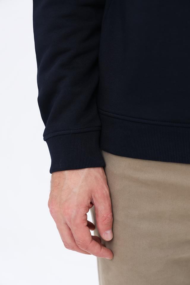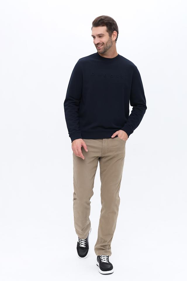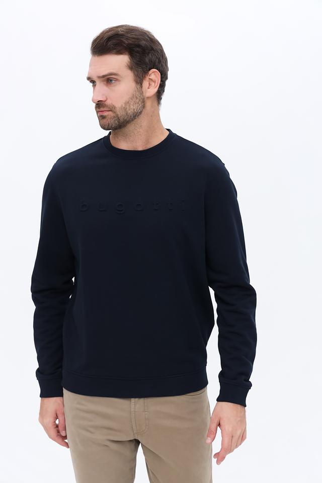 Мужской джемпер Bugatti тёмно-синего цвета с рельефным логотипом на груди. Изготовлен из мягкого хлопка, обеспечивающего комфорт в носке. Классический крой и минималистичный дизайн делают этот джемпер универсальным дополнением к вашему гардеробу. Состав: хлопок 100%