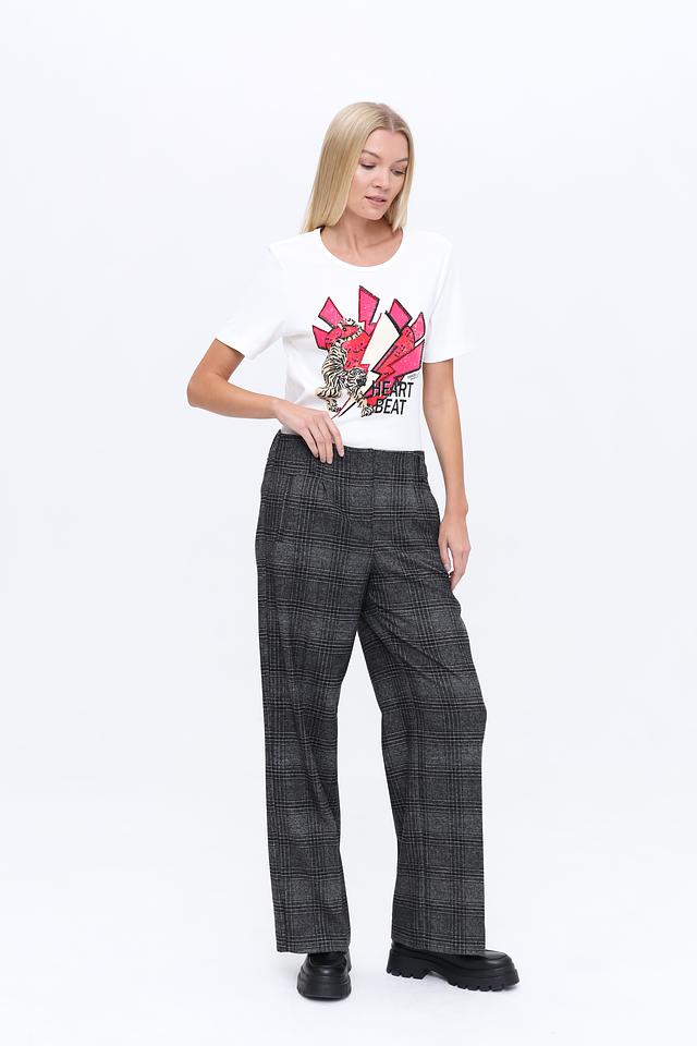 Женские брюки Bugatti серого цвета в классическую клетку – стильное и комфортное решение для создания повседневных образов. Модель выполнена из мягкой ткани с добавлением вискозы и эластана, обеспечивающих удобную посадку и свободу движений. Состав: полиэстер 63%, вискоза 34%, эластан 3%