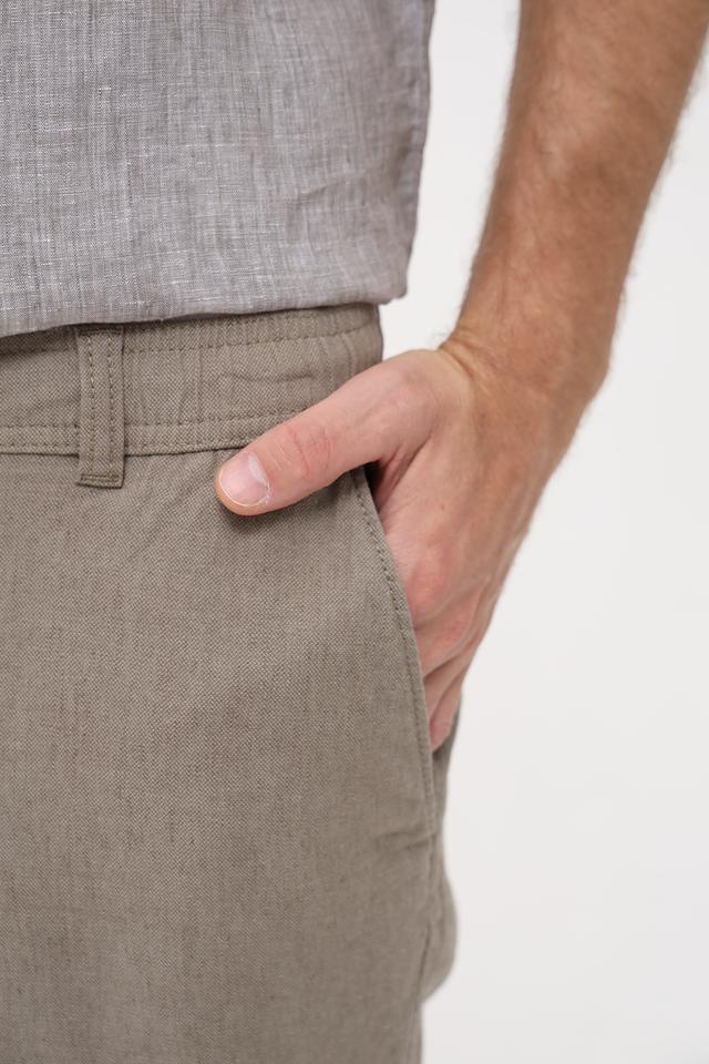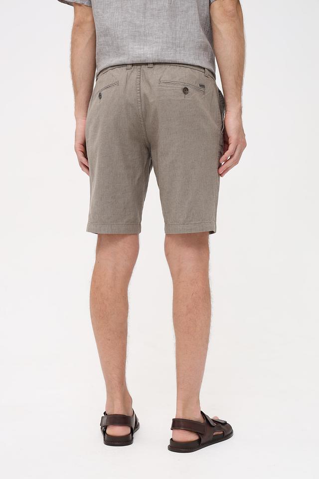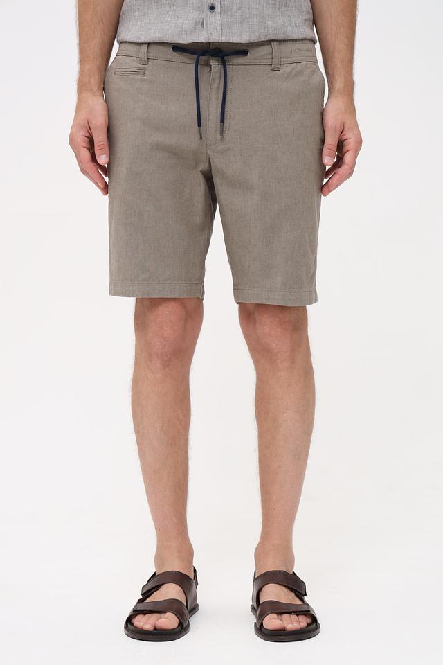 Мужские шорты Bugatti цвета хаки — удобная и стильная модель с эластичным поясом и кулиской. Шорты выполнены из смесовой ткани, сочетающей в себе хлопок, лен и эластан, что обеспечивает комфорт и практичность. Состав: хлопок 55%, лен 44%, эластан 1%